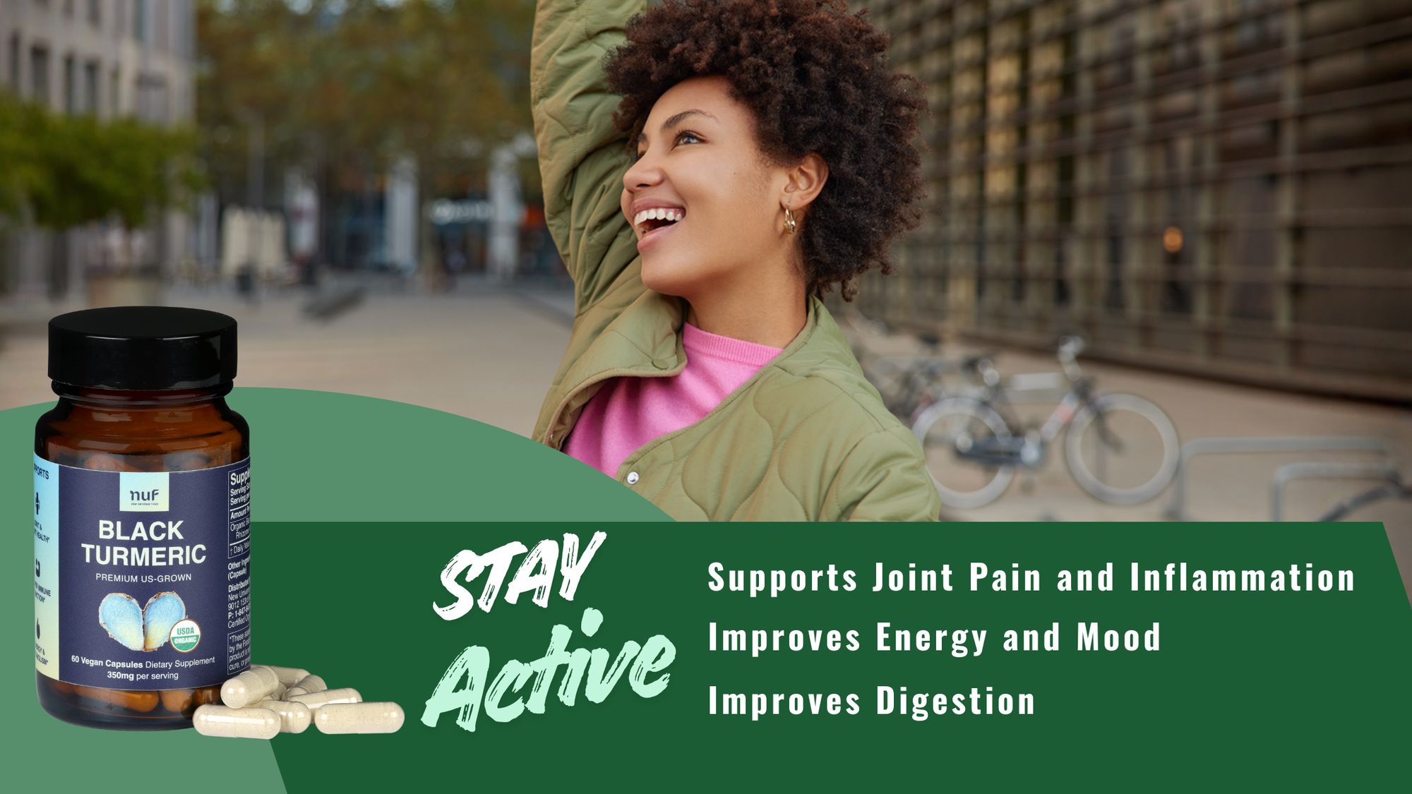 Packaging of New Universe Black Soy Bean Powder with a bowl of powder on a white background