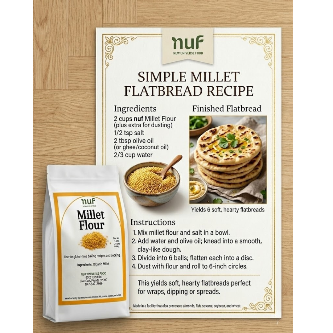 Millet flour is a naturally gluten-free ancient grain known for its light texture and digestive friendliness—perfect for those seeking a softer, cleaner baking alternative.