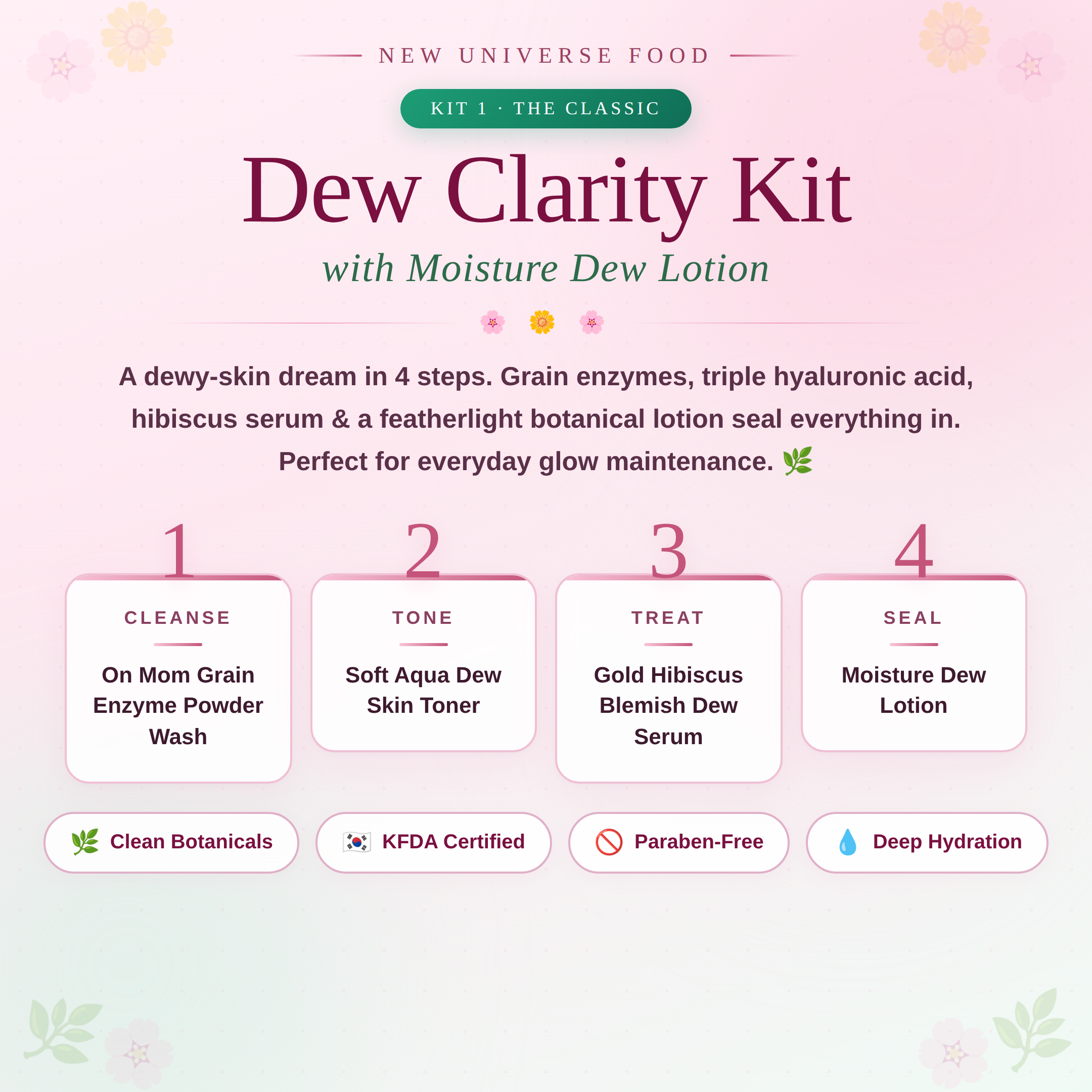 A complete 4-step ritual designed to cleanse, rebalance, target, and seal — leaving your skin dewy, clear, and beautifully nourished.