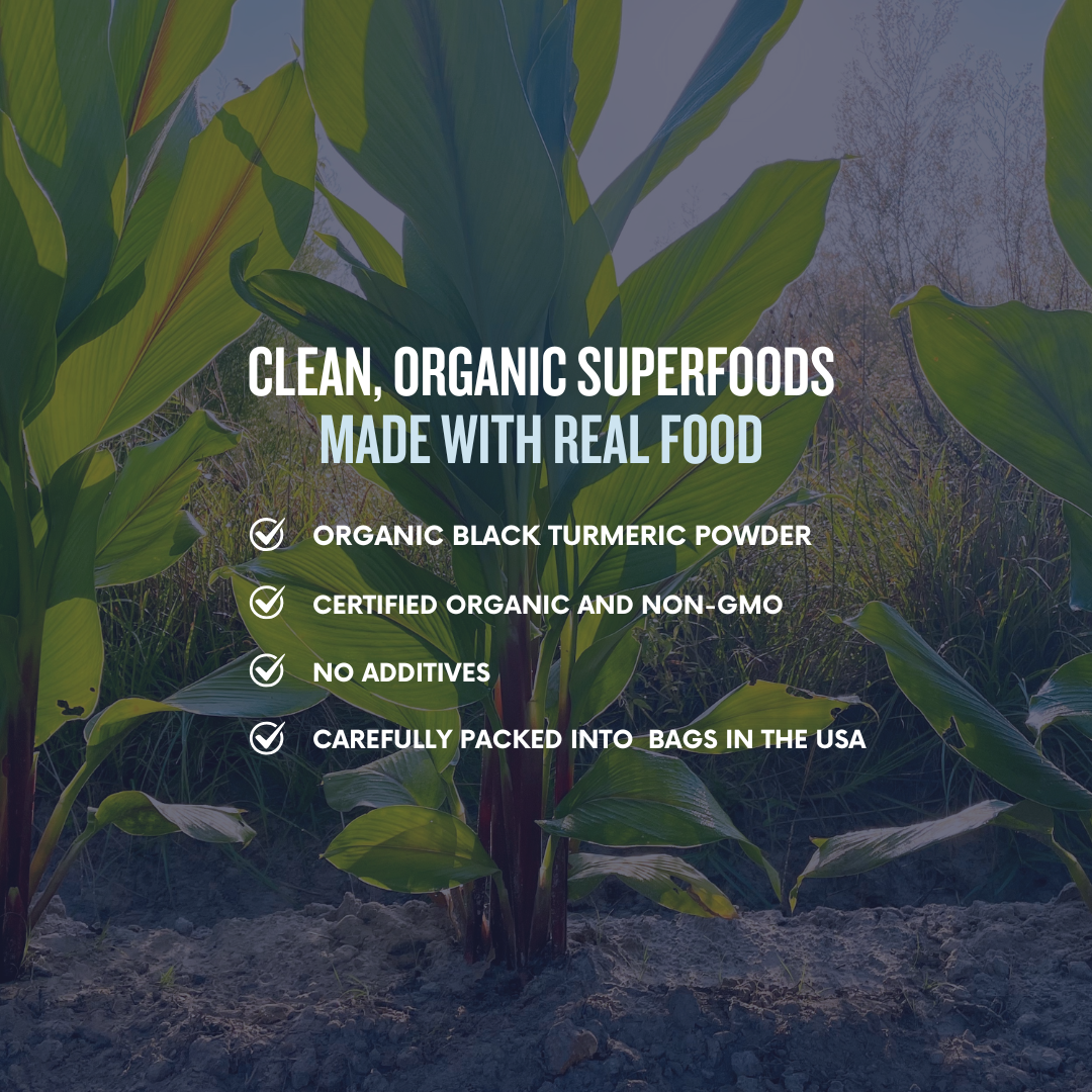 Unmatched quality sourced from a single, certified organic farm in Florida, our Black Turmeric Powder is grown without the use of harmful pesticides, herbicides, or insecticides.