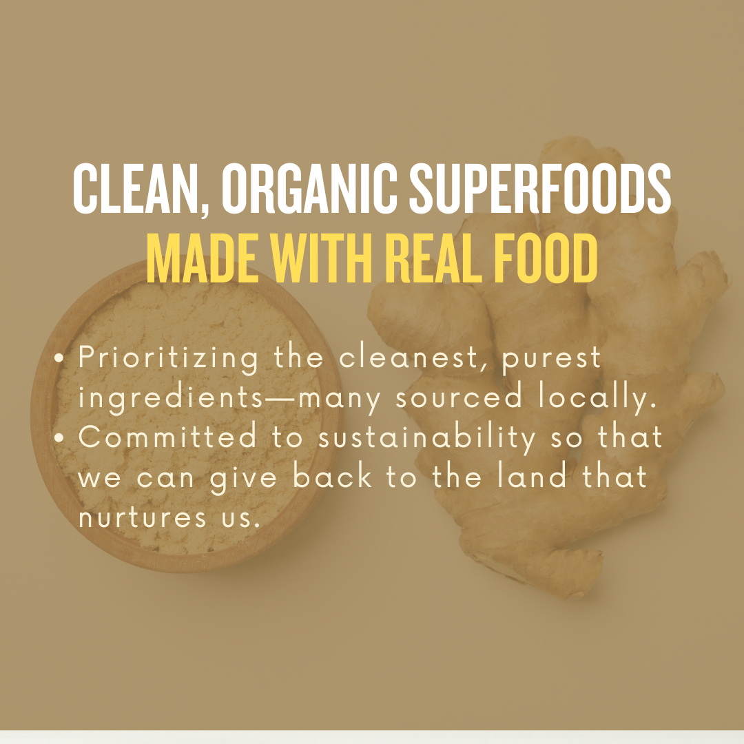 We source only the finest organic ginger roots from Peru and process them by hand in small batches. This meticulous method preserves the vibrant, robust flavor and potent phytonutrients that make our ginger powder a true superfood.