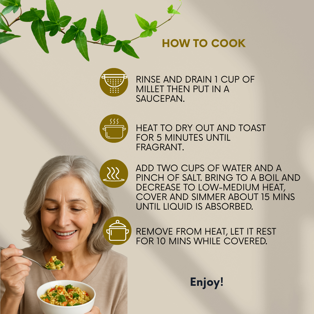 100% Natural: No additives, no preservatives—just the pure, wholesome goodness of whole-grain millet.